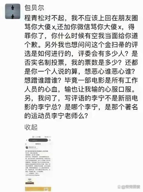 包贝尔被点名后,直接在朋友圈破口大骂,那愤怒的模样仿佛要将程青松生吞活剥;导演陆川也毫不留情,发微博讽刺他是“豢养的旺财”,言语间满是不屑。但程青松没有丝毫退缩,他铁了心要把金扫帚奖办下去。他坚定地认为,中国电影市场需要有自我净化机制,而他甘愿做那个“打扫卫生”的人。这份对内容标准的执着坚守,让他收获了郝蕾、田海蓉等一众好友的鼎力支持。