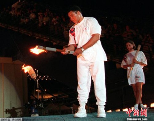 资料图:亚特兰大奥运会上,拳王阿里点燃圣火