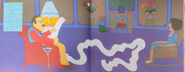 这部绘本,特别吸引人的地方,不仅仅是因为他的画风幽默,很多图画运用了夸张的手法,用色也很大胆,但更让人感到惊叹的,还是要属它自身的反转。