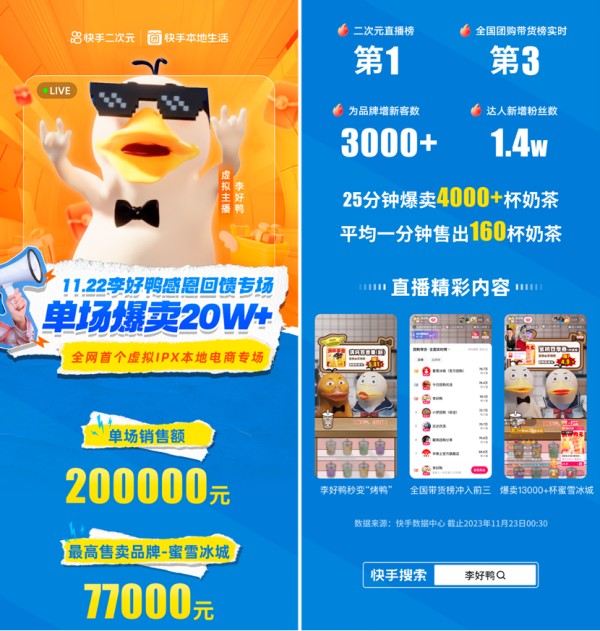 (原标题:携李好鸭为国货品牌赋能,快手开创二次元虚拟主播带货新模式)