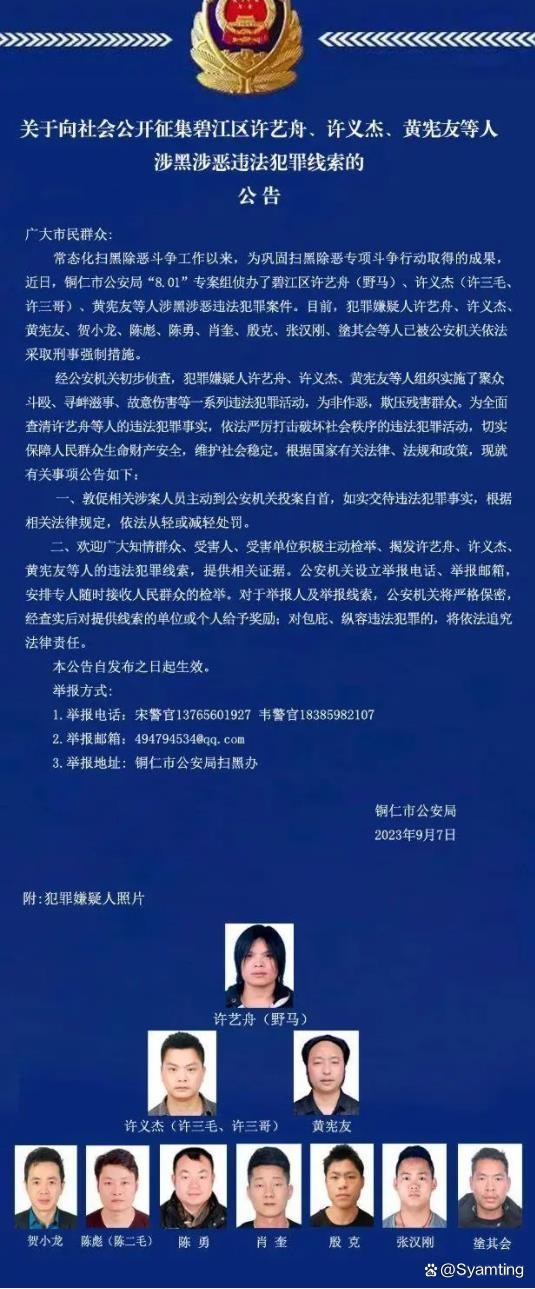 知名艺人野马涉黑被抓,警方对外征集线索,疑似犯罪团伙老大
