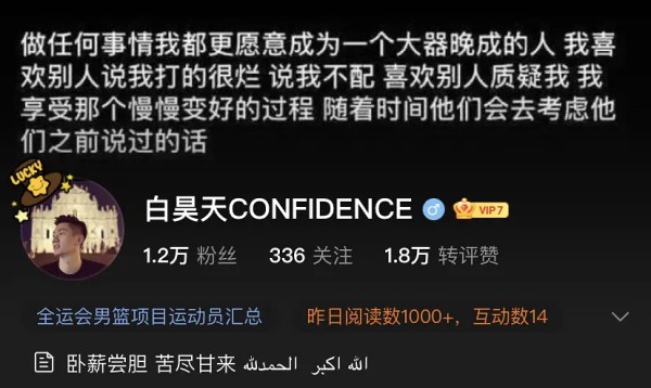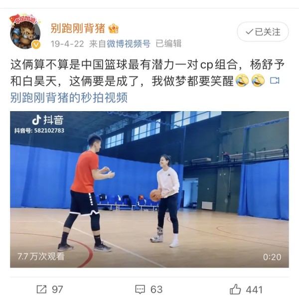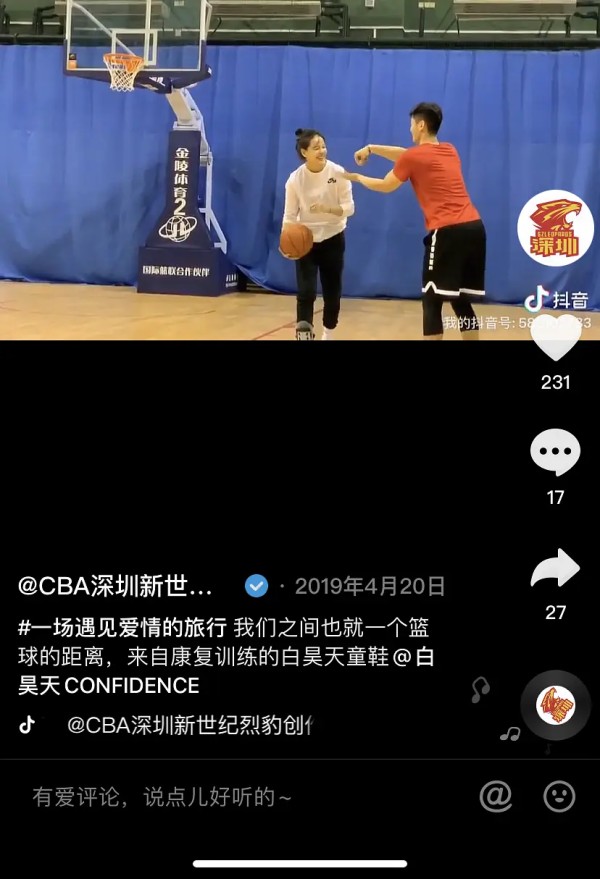 白昊天抖音发过他俩打球视频,自己剪辑配乐的,这bgm让人上头
