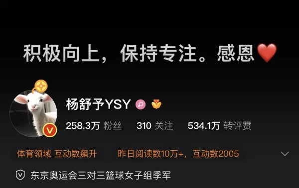 今年奥运会期间杨舒予的个人直播,白昊天被发现观看记录。