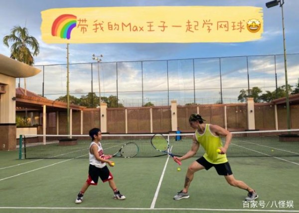 近照中的max看起来长胖了不少,不过,变身网球少年的他还是很帅气的,和爸爸一样喜欢运动的max,相信用不了多久就会瘦下来的。