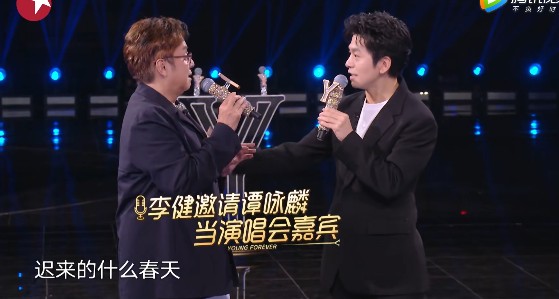 李健果然是谭咏麟的真爱粉,不但开启了话痨模式,还饶有兴致地唱起了“谭校长”的怀旧老歌。