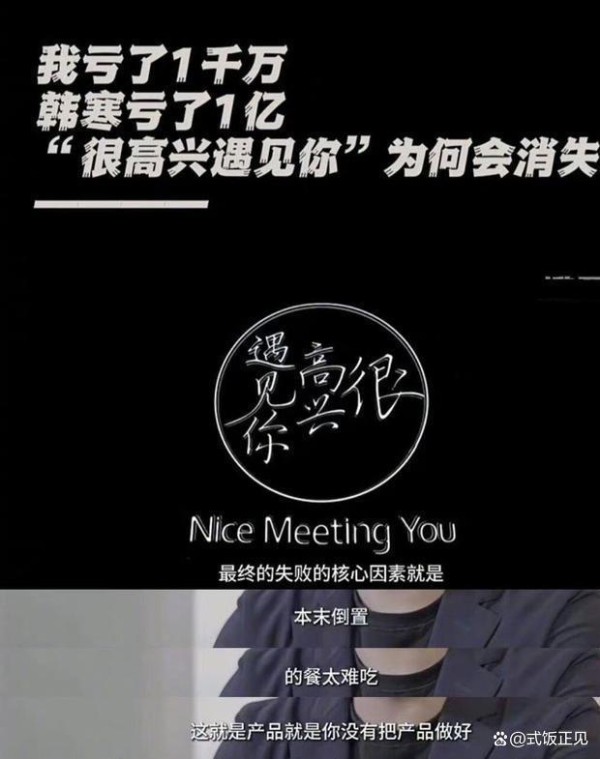 作家的出生地韩寒就是这样的一个例子。作为写作天才,韩寒是文坛一流的获得者。他的作品多次获奖,销量节节攀升,因此引起了众多商家的兴趣。投资人王闻超投资了韩寒的餐饮项目“很高兴认识你”,报道显示该项目一度非常有前景。然而这个项目最终失败了,核心原因就是菜没做好。作为一家餐厅,菜品是核心产品,但由于厨师的问题以及其他一系列服务和菜品质量的疏漏,最终导致声誉下降,顾客减少,经营变得非常困难。最终,韩寒付出了巨大的代价,损失超亿。