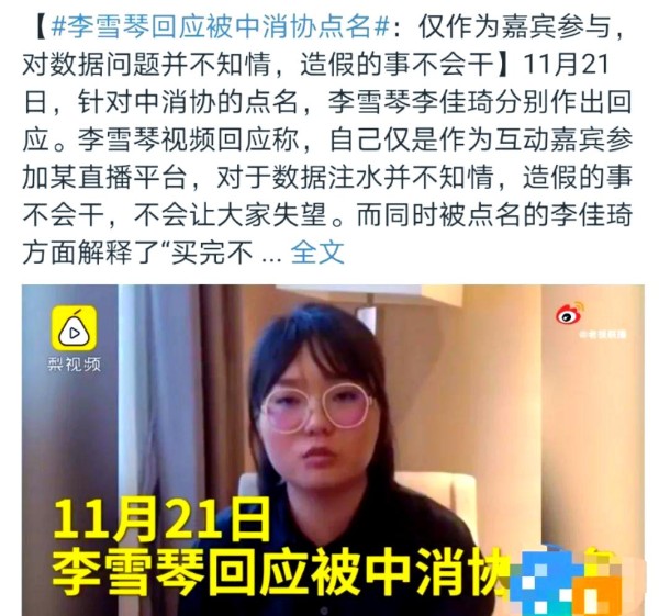 在回应中,李雪琴澄清自己只是作为互动嘉宾参与了某直播平台的活动,对于数据注水问题毫不知情,并坚决否认参与任何造假行为。她表示自己对此次事件负有责任,今后将更加谨慎地选择合作对象,以避免类似情况再次发生。李雪琴对 直播事件中数据注水的问题进行澄清,表示将谨慎选择未来合作。