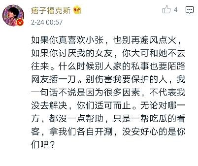 此前,就曾有传闻称福克斯与粉丝发生争执。近日,一条关于“福克斯女朋友”的微博标签在多个微信群和朋友圈引发了热议。事情起源于某营销号爆出ANNY_LOU为福克斯现任女友的消息,随后有网友在评论中表示前女友更为出色,并艾特了前女友的微博,对其气质等方面给予了赞誉。然而,现女友ANNY_LOU认为该评论系前女友的小号所为,意在蹭热度,因此双方在微博上产生了摩擦。福克斯随后发表声明,称赞现女友为好人,并请求“热心”网友们停止对此事的过度关注和调侃。
