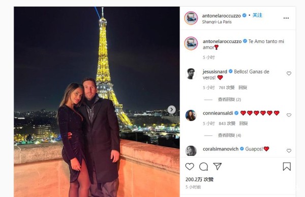 有趣的是,梅西也为安东内拉的照片点赞,还附上了小红心,这或许就是梅西对于安妞的爱吧。在照片发布5个小时后,已经有200万人点赞,这说明了安东内拉和梅西的网络影响力。