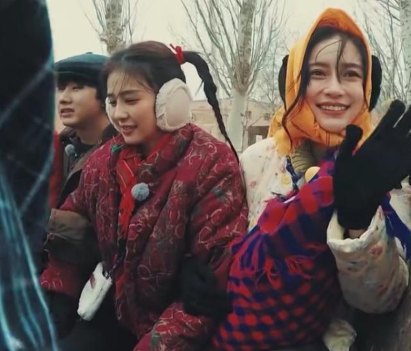 坐在最前面的是杨颖和周洁琼,本来天气就很寒冷,当三轮车启动后,一阵狂风把前排的姑娘都给吹得东倒西歪。就算是两人穿戴整齐,帽子手套都有,但也依旧被冻到鼻子耳朵通红,杨颖也是第一次没有办法顾及自己的女神形象,嘴角上的鼻涕都来不及擦,两人赶忙躲在了车挡风的后面。