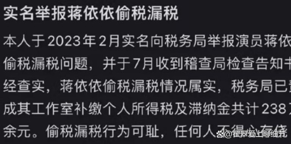 最近娱乐圈又热闹了,不过这次的焦点不是好事。最近的宋祖儿逃税丑闻似乎只是一个开始。接下来,女演员蒋依依被实名举报逃税的消息成为热门话题。艺人的税务问题再次引起网友关注。