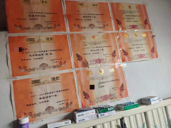 笔者在对王老汉的采访中,看到这户农家墙上贴满王小小的奖状,是一年级到四年级全校统考第一名的奖状。据了解,王小小学习成绩优异,被学校教师称为神童,是学校多年的三好学生。