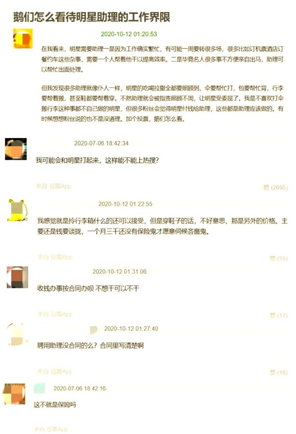 针对这一现象,网友们纷纷发表了自己的看法。一些网友表示同情,认为助理这份职业实际上拿着微薄的工资,却要承担着类似保姆的繁重工作,确实令人心酸。他们质疑是否有些工作超出了助理的职责范围,比如伺候饮食、穿衣穿鞋,甚至是处理鼻涕纸等私密事务。