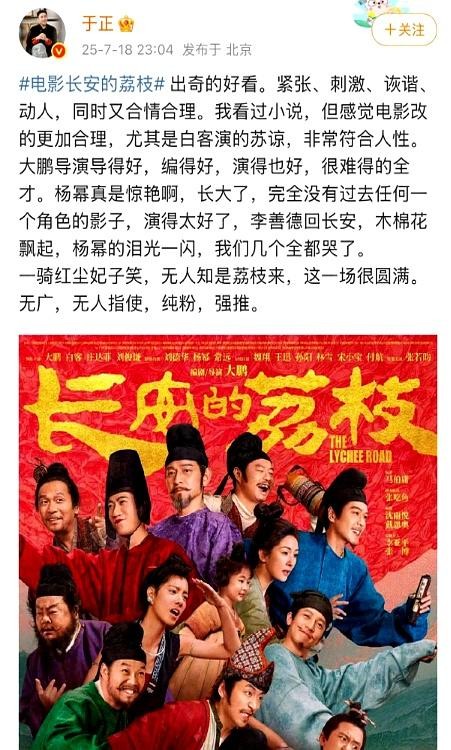 结果2023年7月18号,于正大半夜突然发朋友圈,直接把杨幂捧上了天。