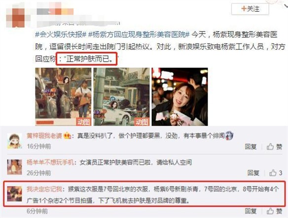 这段时间关于杨紫整容的话题一直引起观众的热议,近日杨紫现身某整形美容医院的照片,把自己包裹得严严实实,在里面还呆了很久的时间,让不少人质疑是不是做了整形。随着事情的发酵,杨紫方面也做了澄清,只是正常的护理,没有做整形也没有整容,希望大家不要妄加猜测。