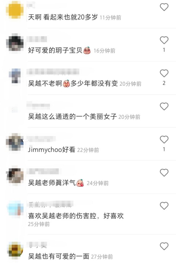 网友们纷纷在评论区里留言表示吴越的状态好好,看起来也就二十多岁,这么多年样子完全没有变,造型打扮也很洋气 还有人感慨吴越私底下的模样和荧幕形象好不一样,没想到她原来这么可爱。