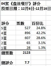 引言: 去年已经有人说,一季打分,不如每期打分来得公平公正一点。虽然没办法改变豆瓣的打分,那就每期都来个组裡的投票打分来自己玩玩也看看。 每次为期十天,请留意,这跟豆瓣能改星不一样哦, 投票之后是不能改分的,谨慎评分,因为只有一次的投票机会。 《明星大侦探5》第4案《盘丝餐厅》评分