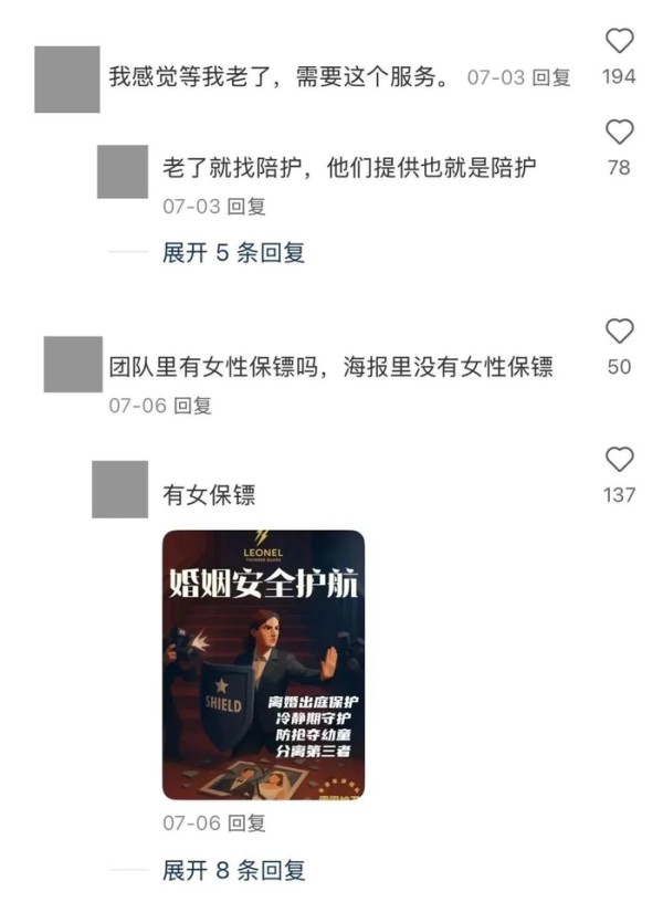 今年以来,保镖的身影开始频繁出现在普通人的困境叙事里——受欺凌的单亲妈妈、陷入邻里纠纷的普通人、被骚扰的年轻女孩……当现代人的生活越来越成为孤岛,传统的解决路径失效,人们发现,保镖护卫,这个专门提供“安全感”的行业,正嵌入普通人生活的缝隙,为无力者提供某种庇护。