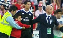 在比赛中C罗也没有生气,而是紧紧的抱住小球迷。