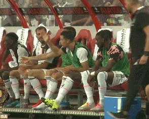 比赛当中,作为巨星的C罗丝毫没有架子,而是把小球迷抱在腿上。