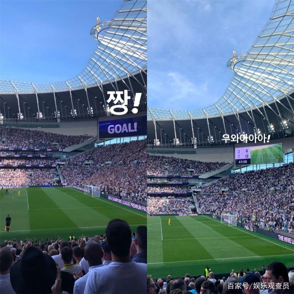 这个内容的意思就是说,金智秀看了孙兴慜的比赛,而且还分享了两张照片,而从照片上看,其实也看不出什么,就是在足球场的观看台上拍摄的照片,里面肯定是没有孙兴慜的,所以硬扯上去,好像就有点牵强了。
