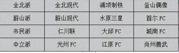 简单点说,可以分为四大派系,即全北派、蔚山派、市民派、中立派。