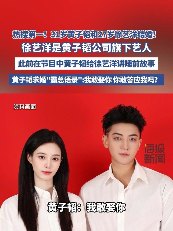黄子韬、徐艺洋官宣结婚,爱情长跑终成正果?这波狗粮我先干为敬!
