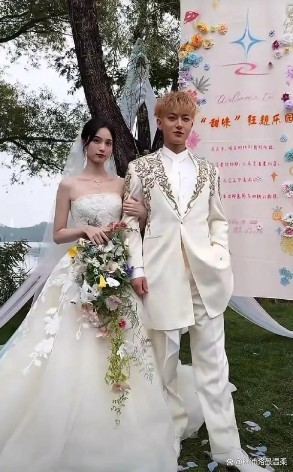主舞台用 3000 支白玫瑰搭成海浪造型,T 台两侧的灯箱里全是两人五年间的合照,背景音乐是 2020 年黄子韬给徐艺洋的加油歌。徐艺洋的婚纱镶嵌着 328 颗施华洛世奇水晶,头冠上的珍珠与右脸泪痣形成完美对角线;黄子韬西装胸口的银质胸针刻着 “Z&Y”,口袋巾上绣着初遇日期 “0523”。最动人的是交换戒指环节,那枚钻戒是黄子韬用《创造营》时期的工资定制的,内圈刻着 “龙韬娱乐老板娘专属”,俏皮又深情。