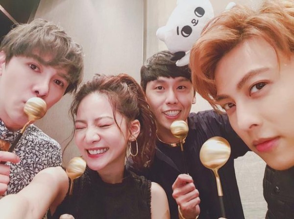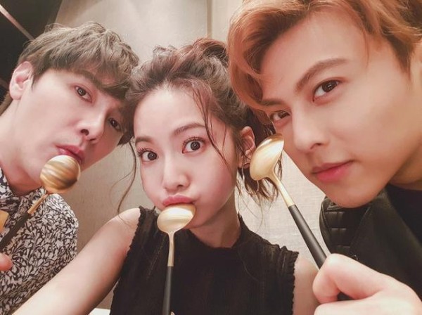 近日,王子与曾之乔还一同出席了某活动,之后两人还与其他几位好友一起吃饭,吃饭期间几位好友一起合影拍照,合影中几位好友都拿着汤匙,曾之乔则将汤匙含在嘴里卖萌。