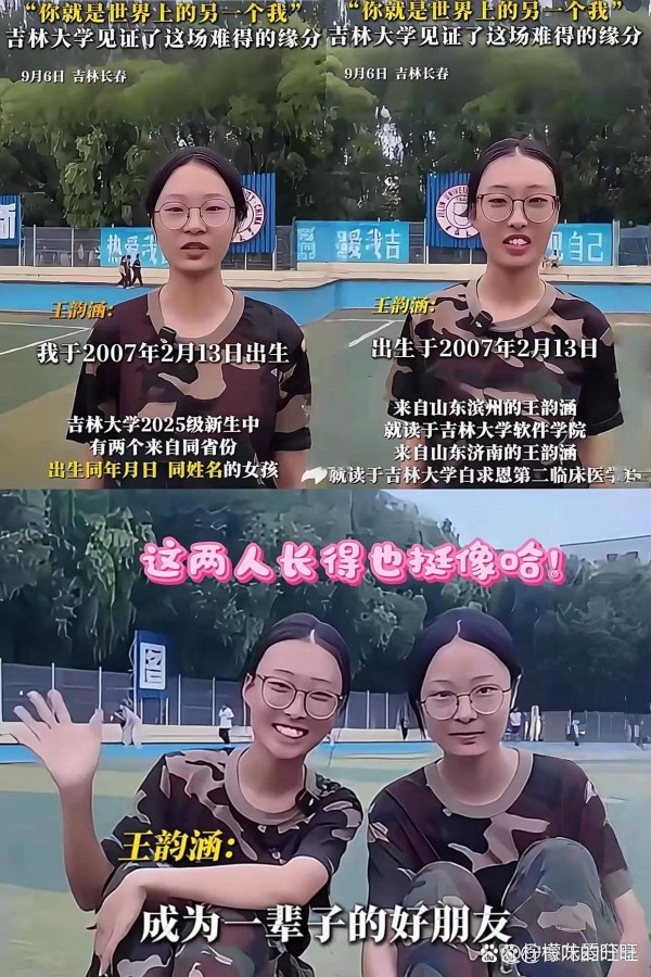 这下连科学都解释不清了!吉林大学25级两位新生,在军训期间认识,一聊天,发现两人除了没有血缘关系,其他都惊人的相似。这世界是真的有另外的一个自己吗?