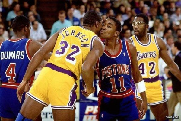 对于一些球迷来说,他们并不了解魔术师约翰逊和“微笑刺客”托马斯之前发生了什么,是什么让这两人的关系出现隔阂。在当年,魔术师约翰逊与“微笑刺客”托马斯的关系非常要好,这两人甚至在全美直播的NBA总决赛上还能互亲脸颊以示友好。只不过,两人关系在20世纪80年代末开始恶化,当时完全有资格参加巴塞罗那奥运会的“微笑刺客”托马斯竟无缘1992年那支历史性的梦之队,日后丹尼斯-罗德曼力挺托马斯,直言即便迈克尔-乔丹等人不喜欢他,那(入选梦一队)也是他应得的荣誉。在联盟很有声望的魔术师约翰逊当时并没有挺身而出支持“微笑刺客”托马斯,甚至还对托马斯曾散播他是双性恋或者同性恋的谣言感到愤怒,两人关系一度水火不容。