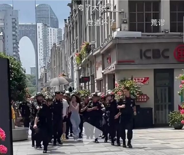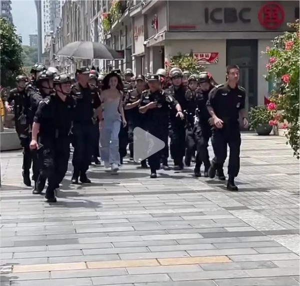 8月18日,杨颖现身浙江温州五马街,身边围着一圈特.警。