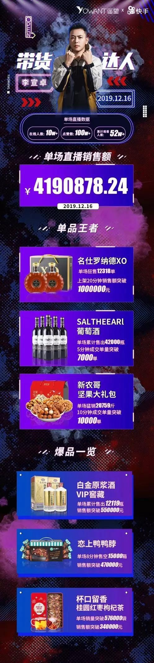 相比之下,“快手酒仙”李宣卓能在如今市场环境中仅用三个月时间冲到酒类排行第一名的,也算得上传奇。