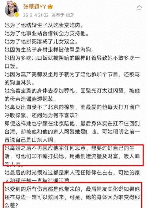 大S的去世让整个事件再次受到关注,张颖颖频繁出现在热搜上,她的一篇篇发文向支持她的人传达了一种情绪。