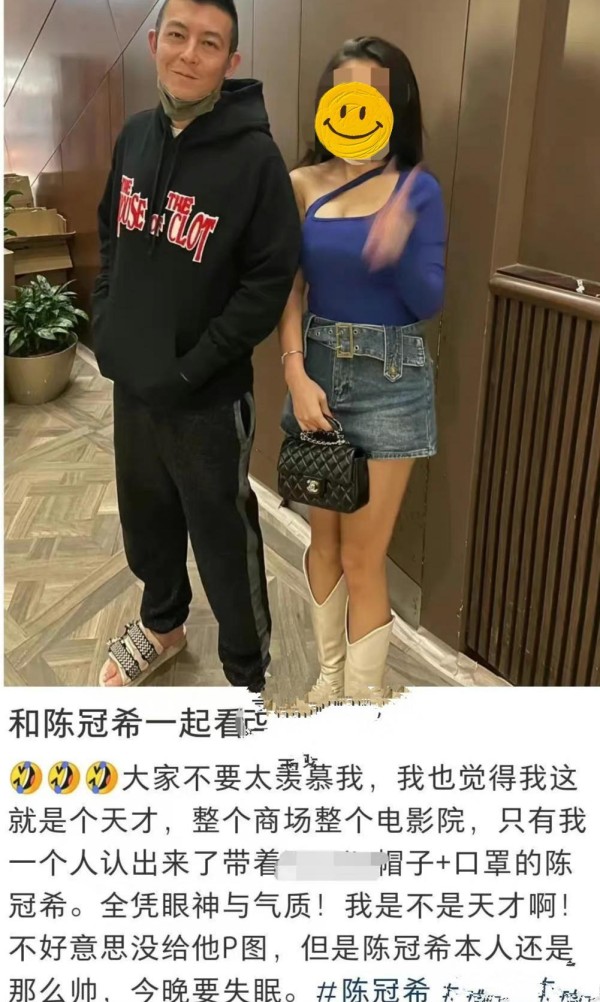 近日,有人在商场偶遇到了陈冠希,并且拿到了与陈冠希的合照。