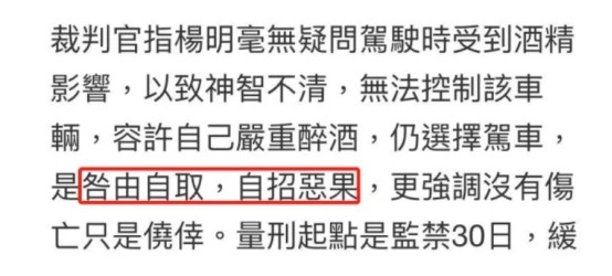 根据港媒报道,在整个开庭期间,杨明都表现地特别紧张。为了能够顺利脱险,他还特意求得了一个护身符为自己“保驾护航”。然而不幸的是,在经过漫长的开庭之后,杨明还是被法官宣判了不小心驾驶罪名成立。