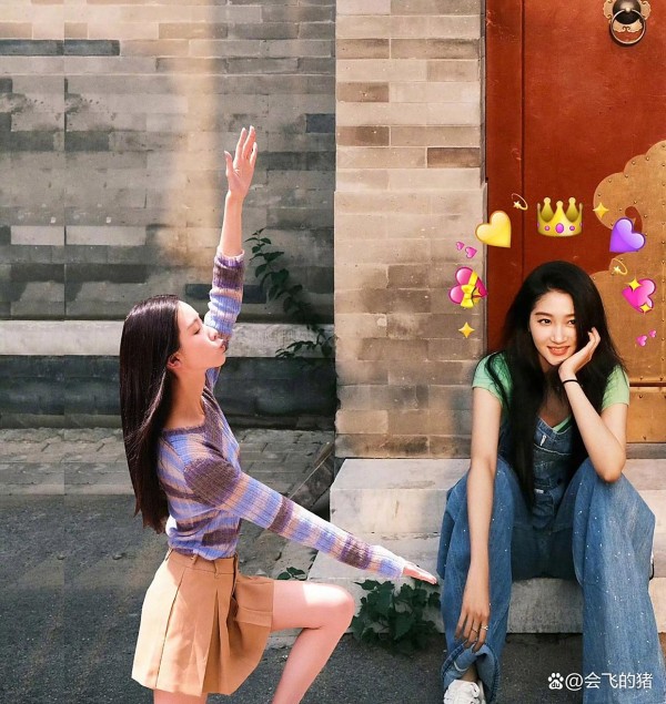 关晓彤单膝跪地为合照充当画框的举动,更显姐妹间的默契与幽默。没有刻意打扮,没有精致妆容,只有素颜出镜的自然状态,这种真实感正是当代社交网络中最难得的品质。