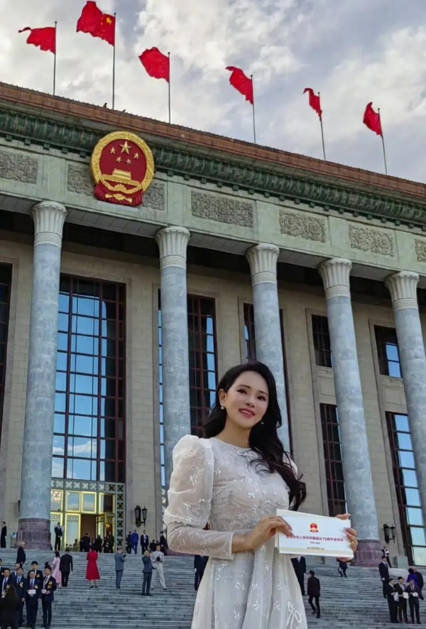 更让人羡慕的是,她还特意分享了在人民大会堂的合照,手里举着那张邀请函,脸上挂满了自信的微笑。