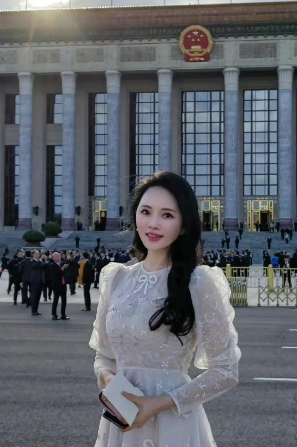 伊能静国庆招待会惊艳亮相,人民大会堂前留影