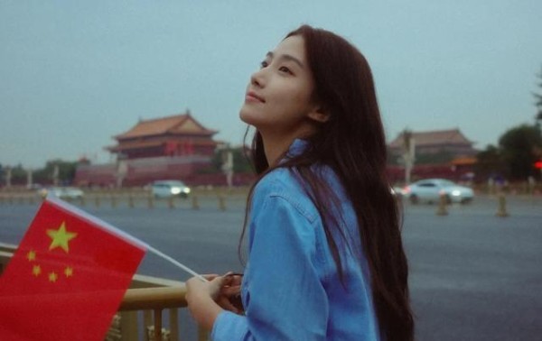 卢昱晓国庆节现身北京,看天安门升旗仪式,幸福感十足
