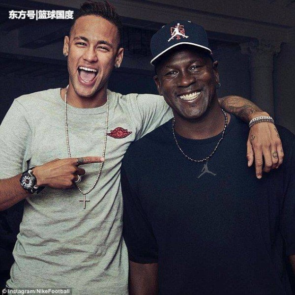 作为NBA历史上最伟大的球员,迈克尔-乔丹也是内马尔所欣赏的人,在2015年夏天内马尔就曾上传一张与乔丹的合影,并表示这是伟大的一天,(跟迈克尔-乔丹合影)梦想成真。在2016年6月初,乔丹与内马尔合作正式联名推出新足球鞋,两人在发布会现场合影留念。照片中的内马尔兴奋不已,在乔丹身边就是一名迷弟。