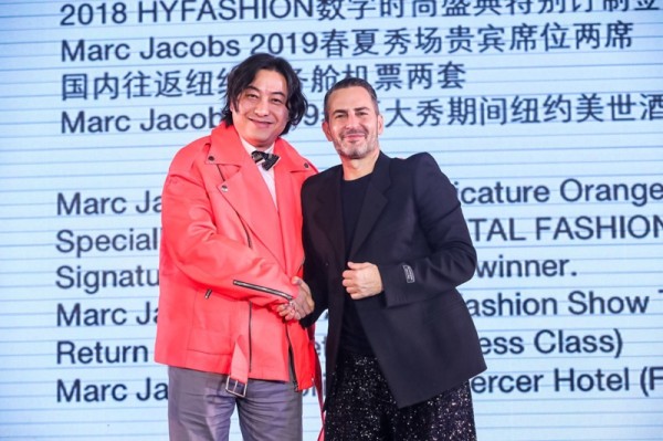 Marc Jacobs作为一位全球时装设计界鬼才,在时尚圈地位显赫,他曾获得美国时装设计师协会CFDA“女装设计师”大奖,更曾是全球顶尖品牌LOUIS VUITTON(路易威登)的设计灵魂;此次出席,他带来了“Marc Jacobs&施华洛世奇水晶肖像夹克-2018 HYFASHION数字时尚盛典特别订制签名版”,拍得者更可获得Marc Jacobs 2019春夏秀场贵宾席位两席(含国内往返纽约商务舱机票两套及纽约美世酒店两晚住宿),Marc Jacobs先生亲自上台为此件拍品助拍。另外,Marc Jacobs先生还捐赠经典款签名版“SnapshotCameraBag”作为拍品用于慈善拍卖,林依晨小姐上台为此件拍品助拍,最终艾克里里先生以高价拍得此物,并贴心赠予林依晨小姐。