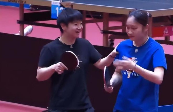 很多人会问原因,为什么李雅可能逆转石洵瑶这位国乒二队的主力选手?答案或许就在前面两天的训练,李雅可、覃予萱一直都是跟随世界第一孙颖莎在训练,而且看得出来莎莎与李雅可得关系不错,莎莎还一度戳到李雅可得眼睛,两人相视一笑。
