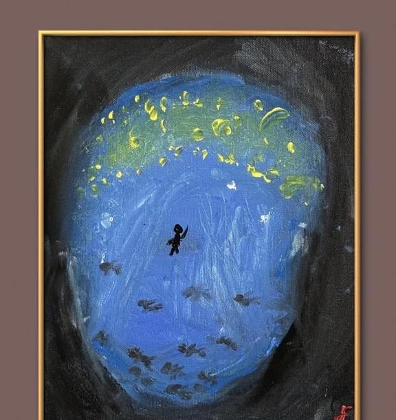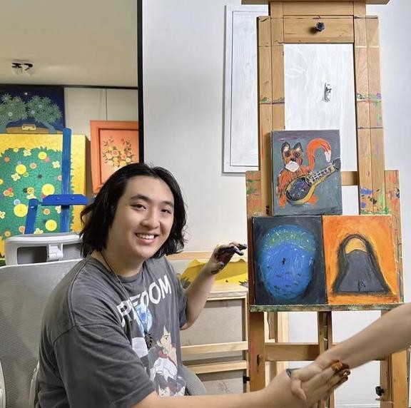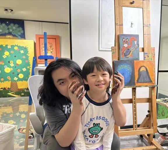 最近,费曼和他妈一块儿去杭州旅游,他们在一个画室里学习画画,费曼自己画了两幅油画,色彩特别大胆,想象力也很丰富,老师都夸他有艺术天分!