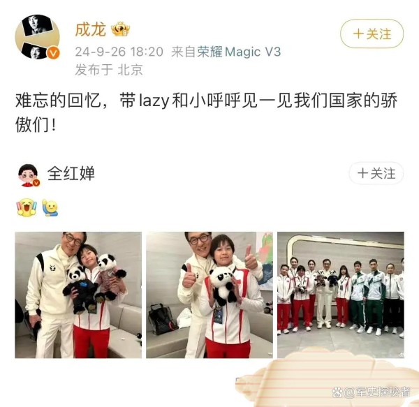 全红婵晒多张和成龙合照,成龙转发回应:难忘的回忆!【成龙转发全红婵合影...