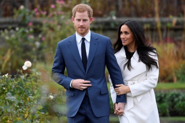 哈里王子和Meghan Markle在2017年11月宣布訂婚後見記者。(路透社)