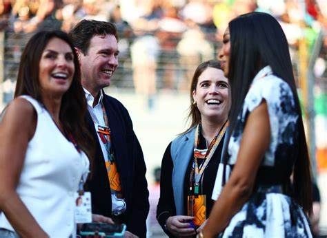 格里嫁给了红牛车队主席克里斯蒂安·霍纳,她在Instagram上分享了一张照片,记录了尤金妮和丈夫杰克·布鲁克班克与格里、娜奥米和奥兰多在比赛前的欢乐时光。