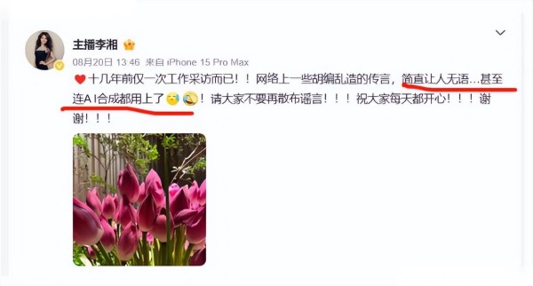 李湘发文回应多年前采访释永信,解释了两人的关系,与女儿无关!李湘发文回应和释永信的关系!怒斥传闻都是谣言,就一次采访工作