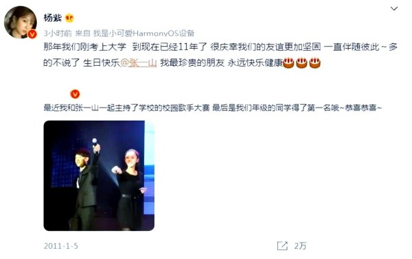 杨紫晒张一山照片为其庆生,青梅竹马,感动影迷