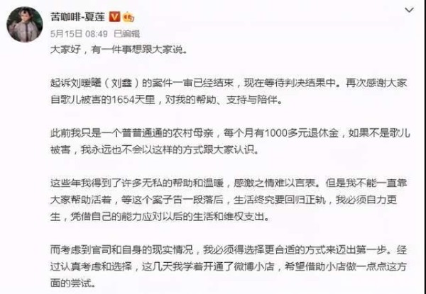因为“自私”, 自己想做电商,来养活自己,这样可以继续为女儿讨回公道。